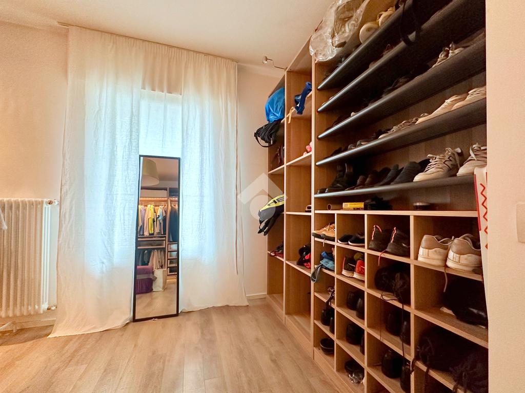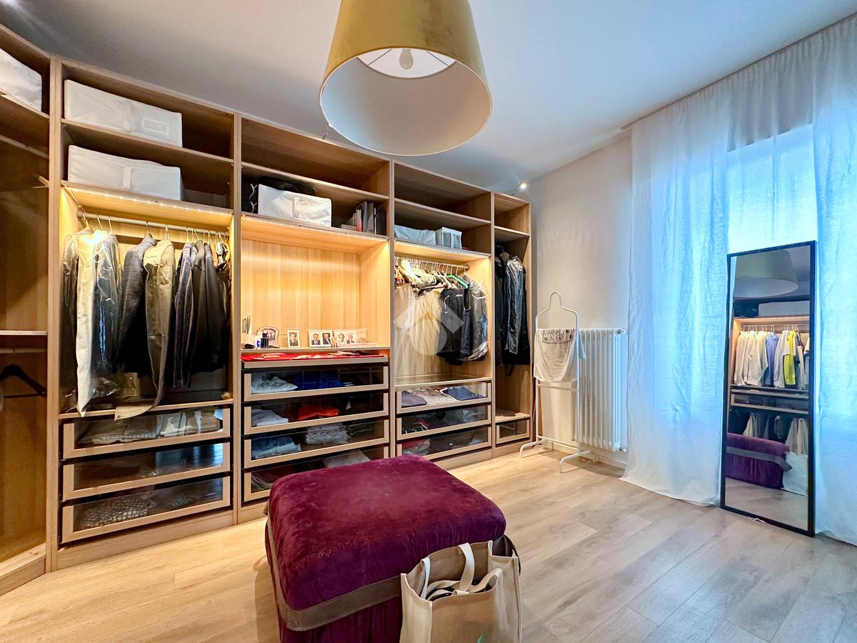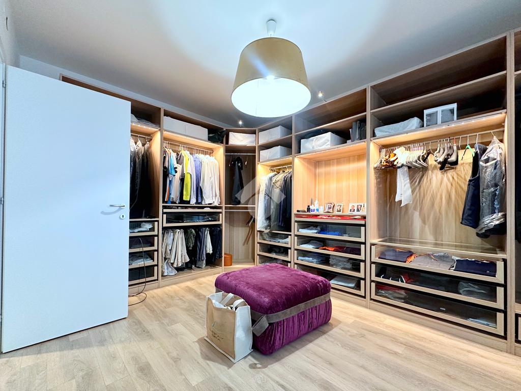 Un disimpegno conduce alla zona notte, composta da tre camere di generose dimensioni. Attualmente, una delle stanze è adibita a spaziosa cabina armadio, ideale per chi desidera ottimizzare gli spazi in modo funzionale ed elegante.