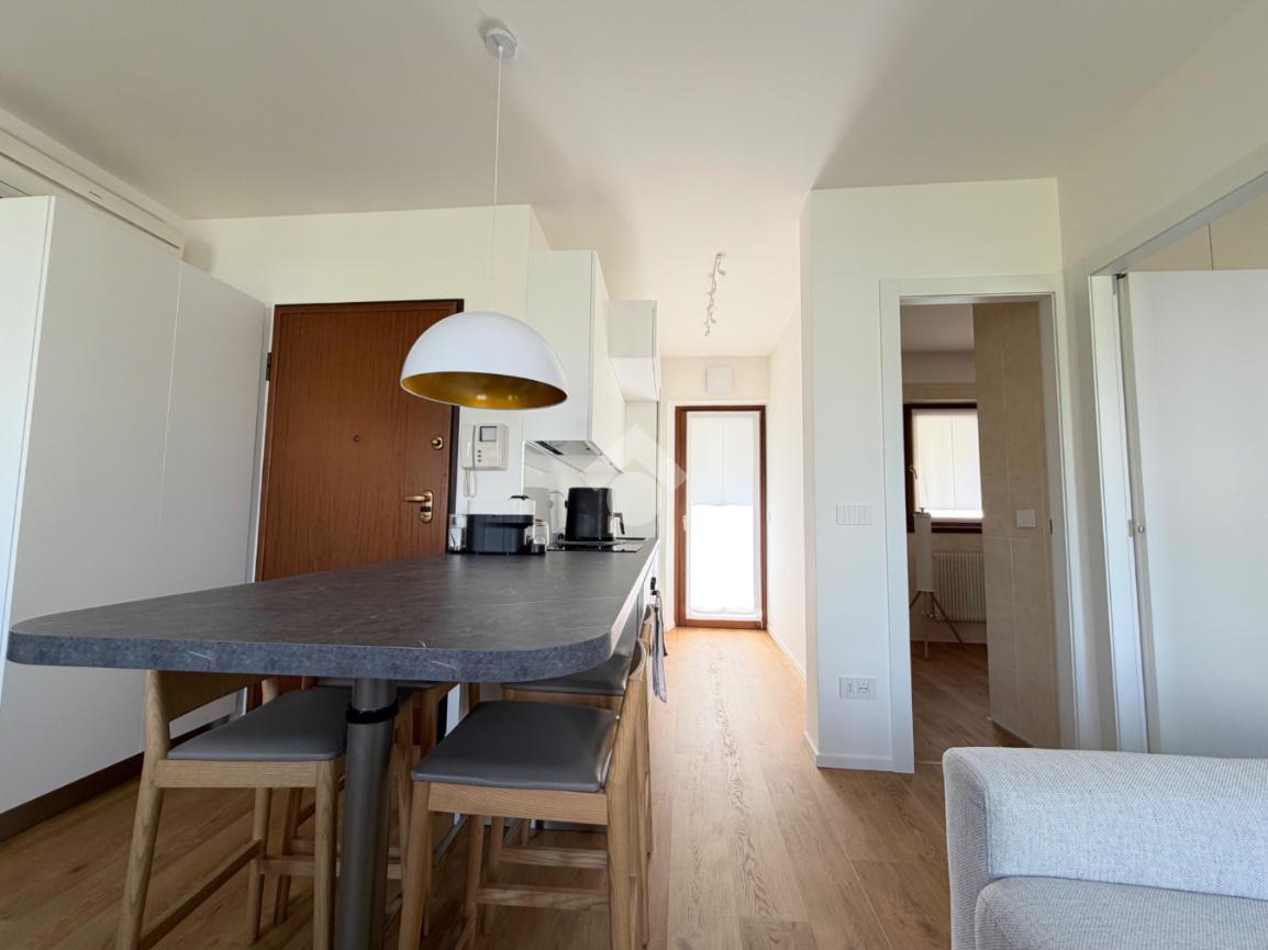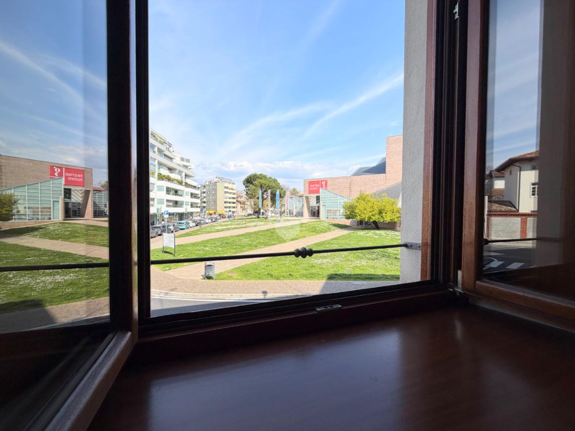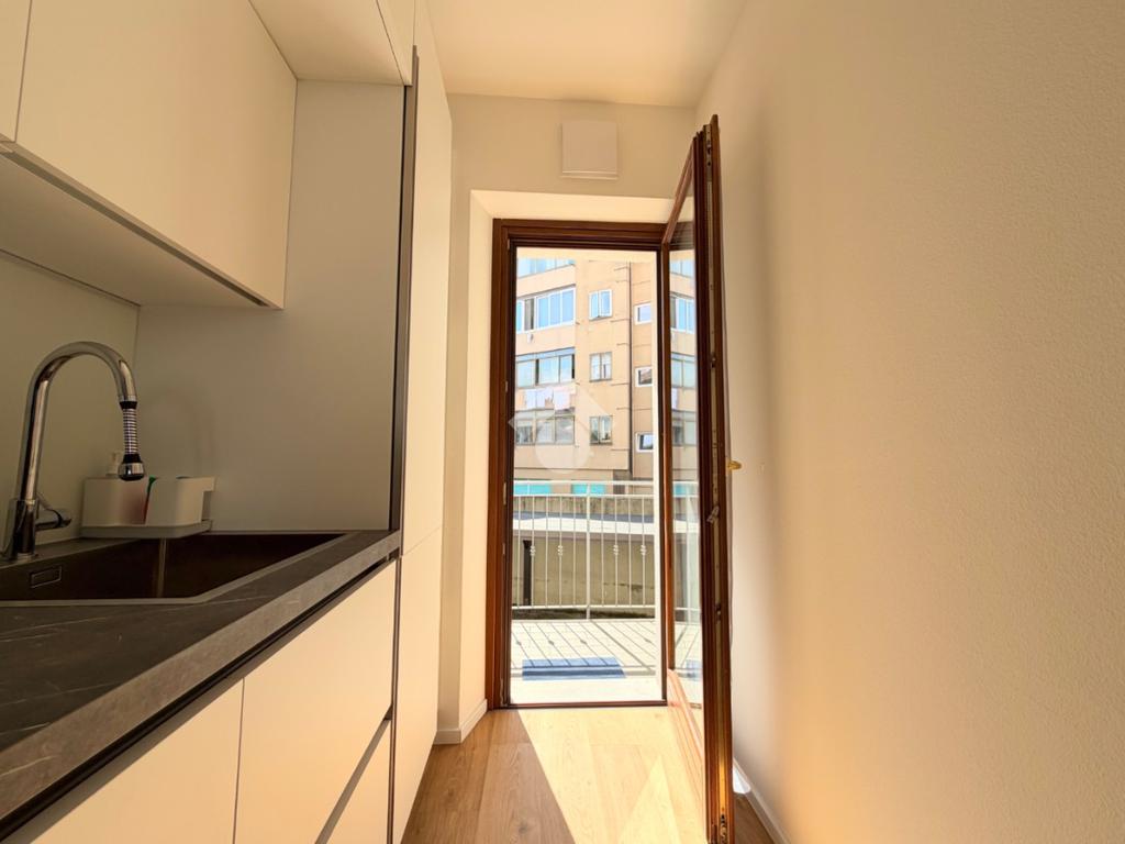 L’ingresso conduce direttamente ad una luminosissima zona giorno con vista sul Teatro, dotata di cucina openspace con accesso ad un comodo terrazzo.