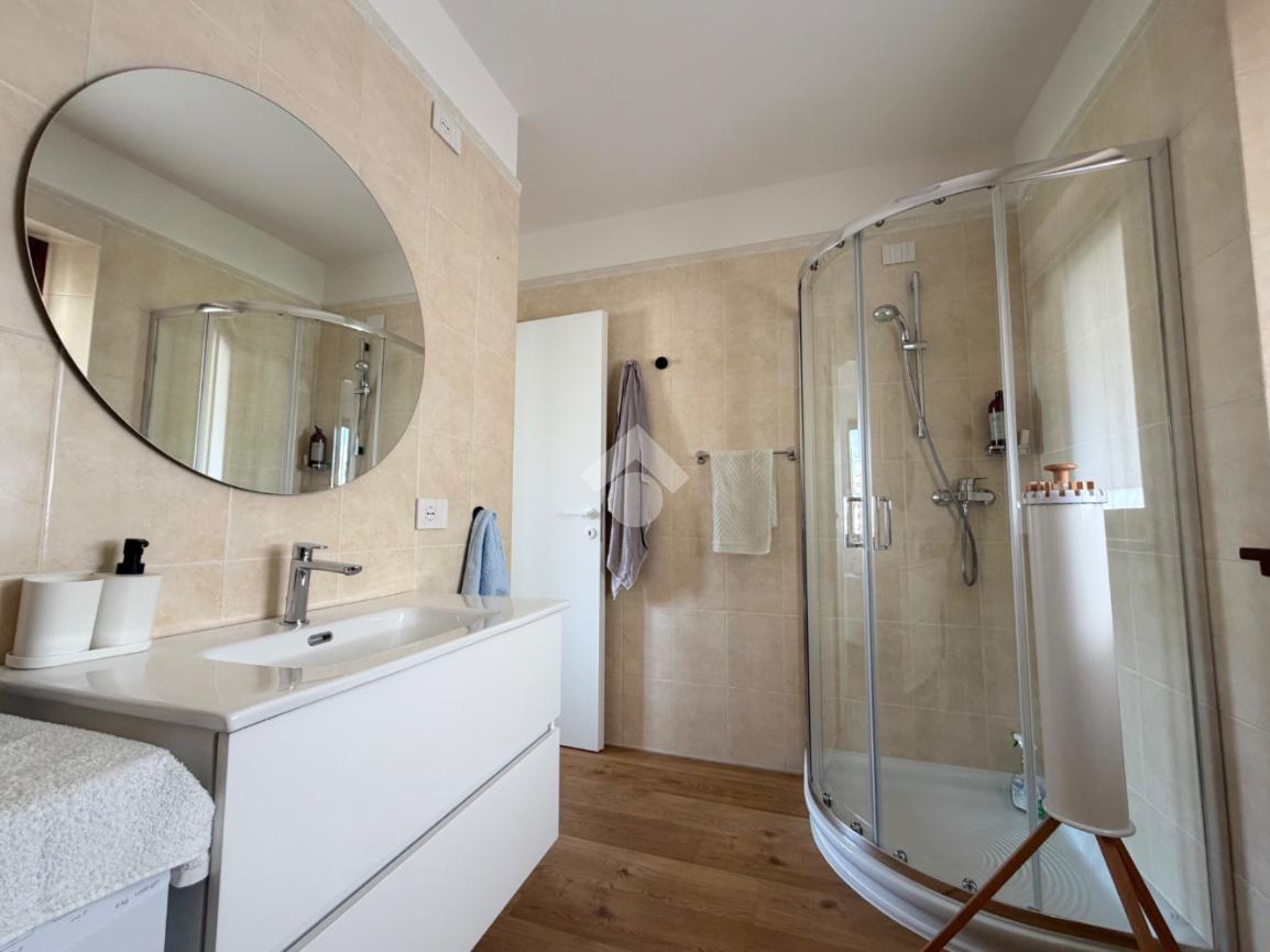 Il bagno, finestrato dispone di box doccia. A completare l’appartamento una confortevole camera da letto matrimoniale con armadiatura.