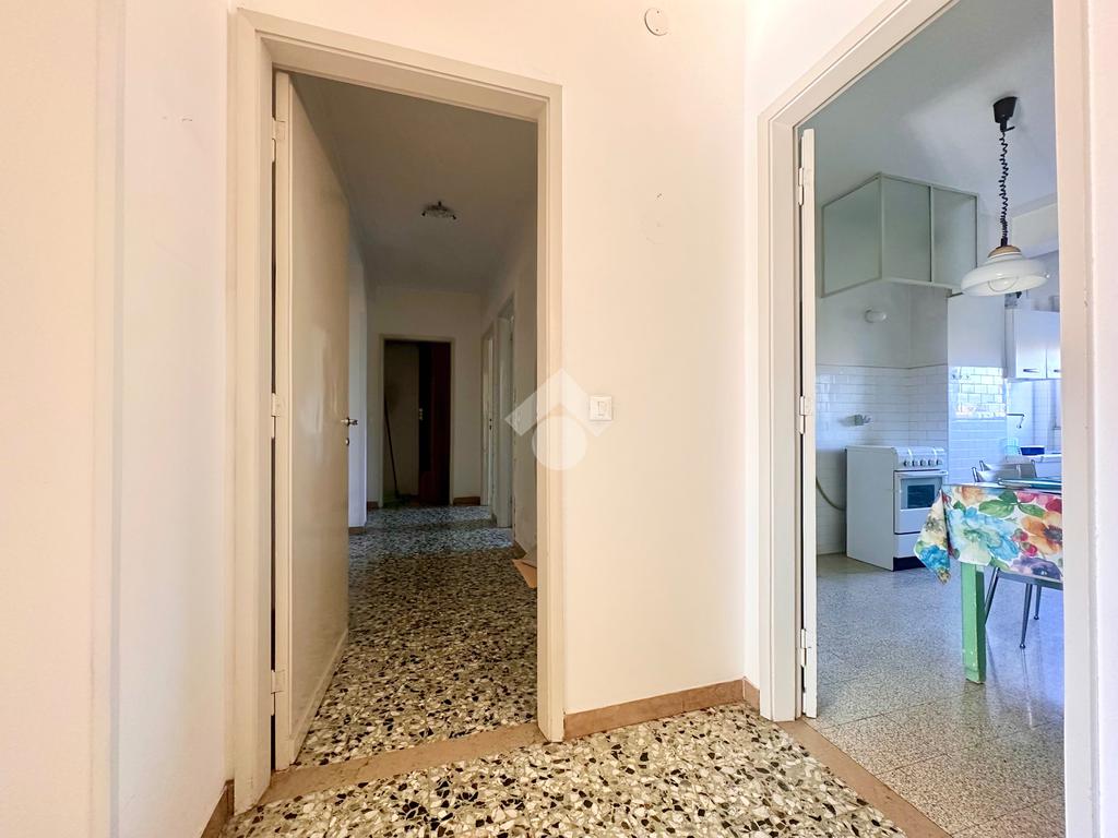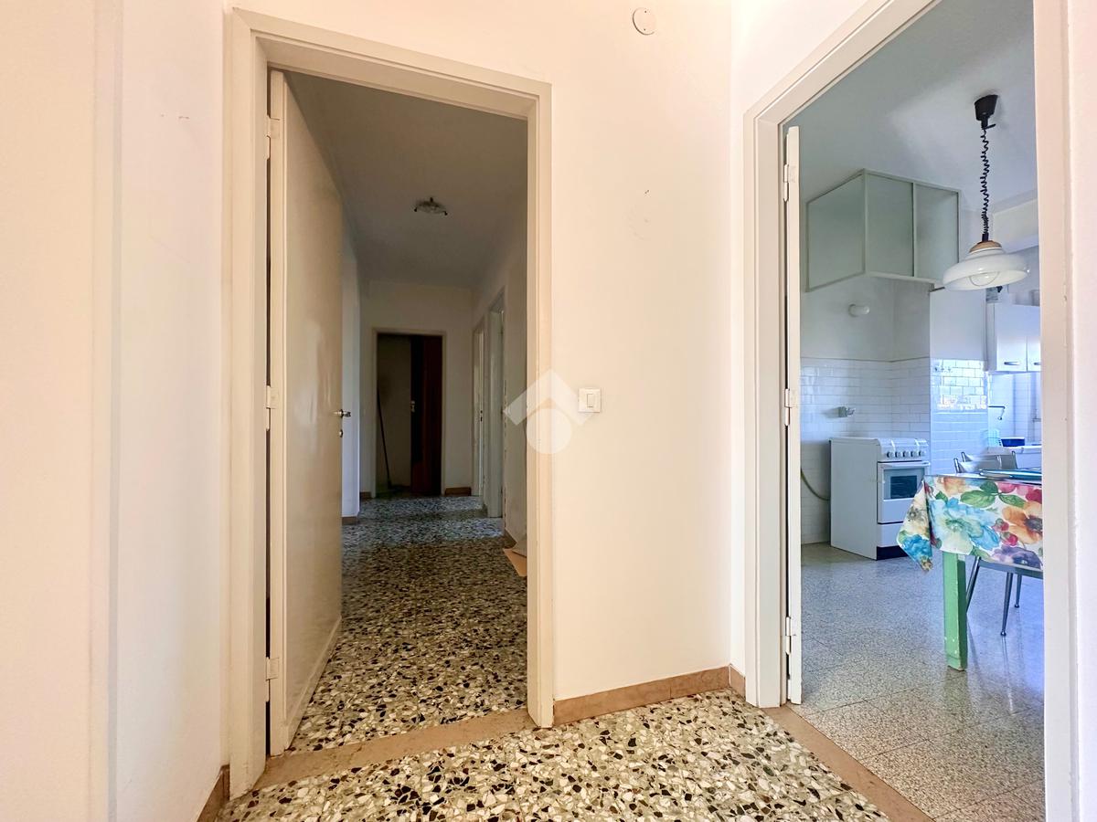 L’abitazione si compone di ingresso, soggiorno con accesso al terrazzo, cucina separata, disimpegno notte, tre camere matrimoniali, bagno finestrato con veranda e ripostiglio.