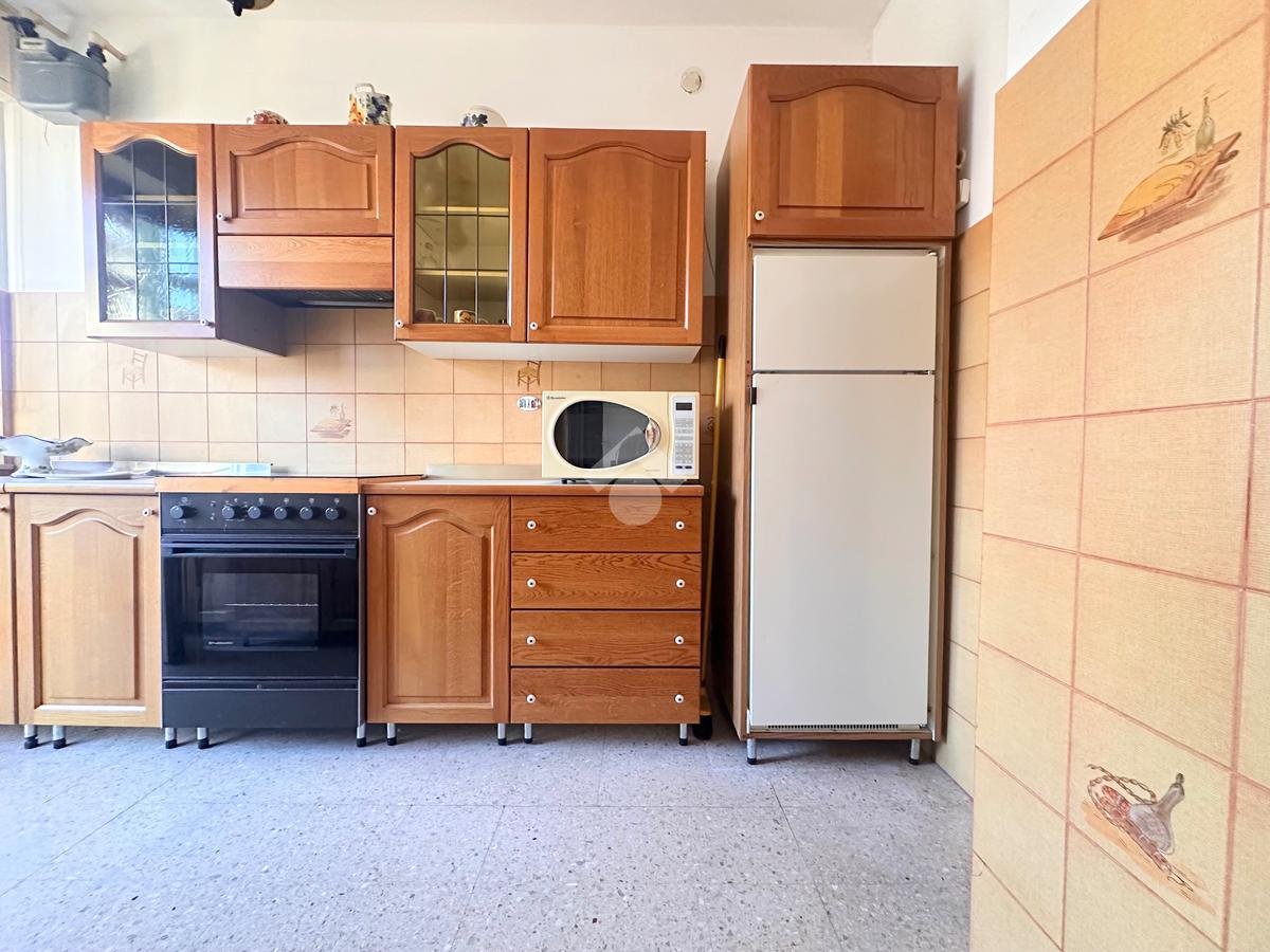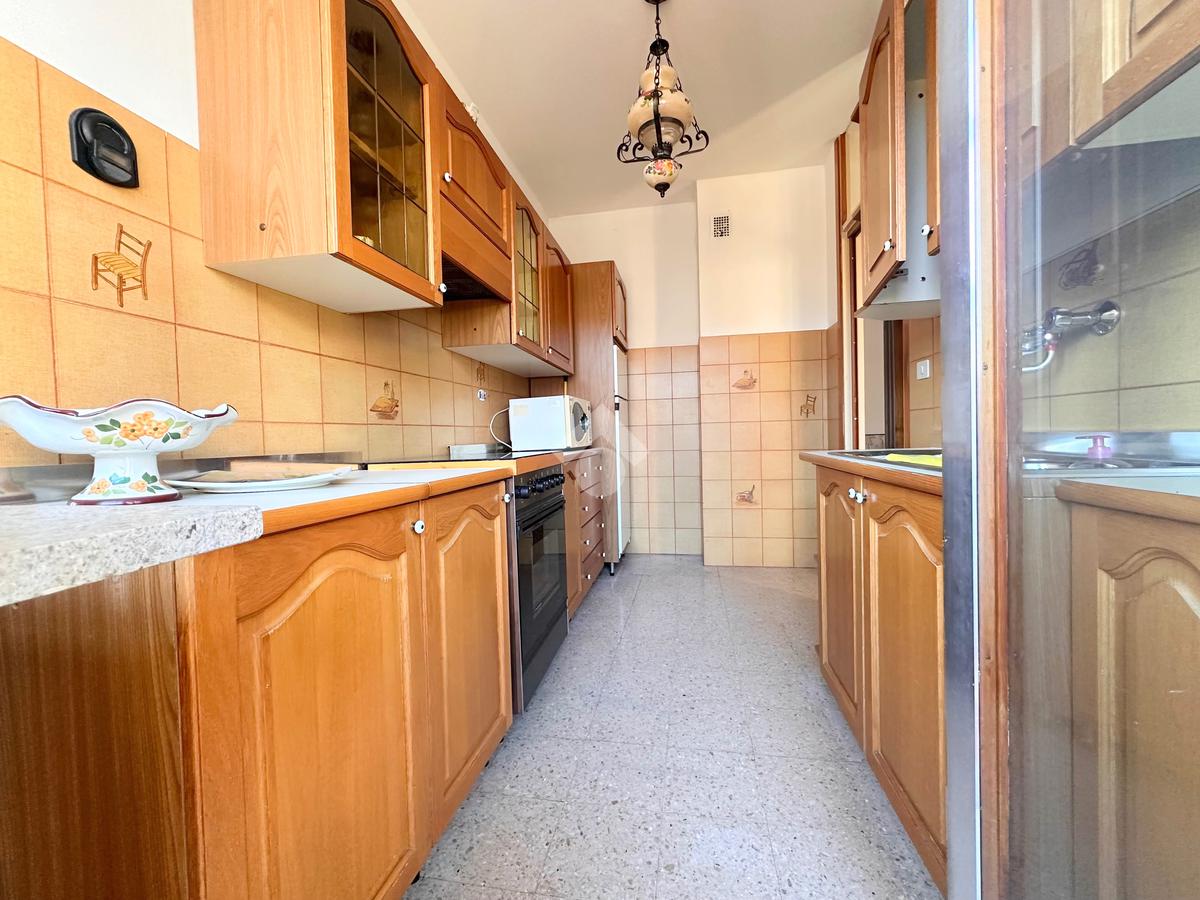 L’ingresso si apre direttamente su un ampio soggiorno, accogliente e ben disposto, con cucina separata che accede a una veranda funzionale e riservata.