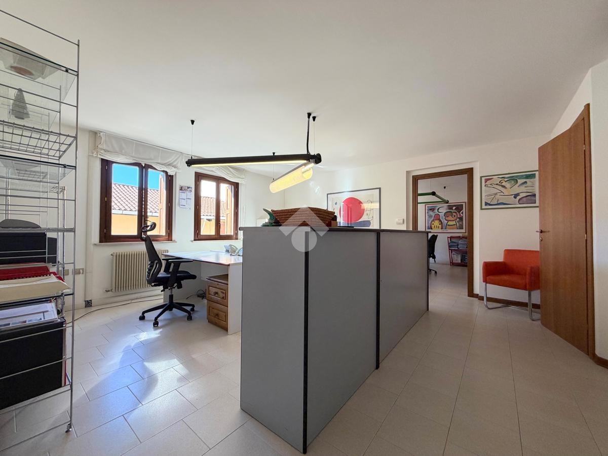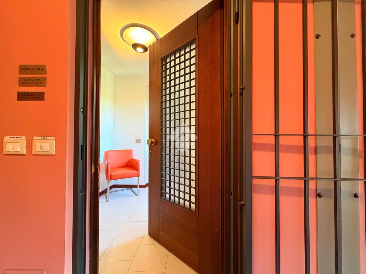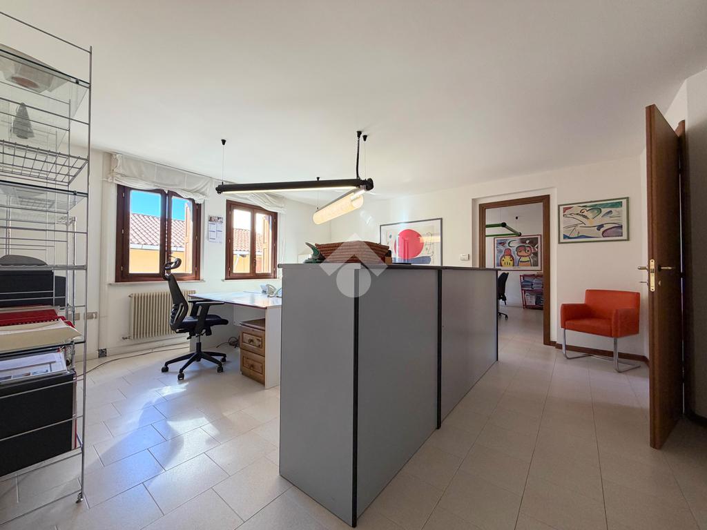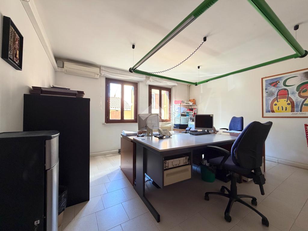 Proseguendo troviamo una stanza di dimensioni generose attualmente utilizzata come zona segreteria. Sulla destra entriamo in un primo ufficio adatto ad ospitare più scrivanie.