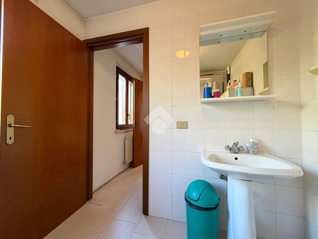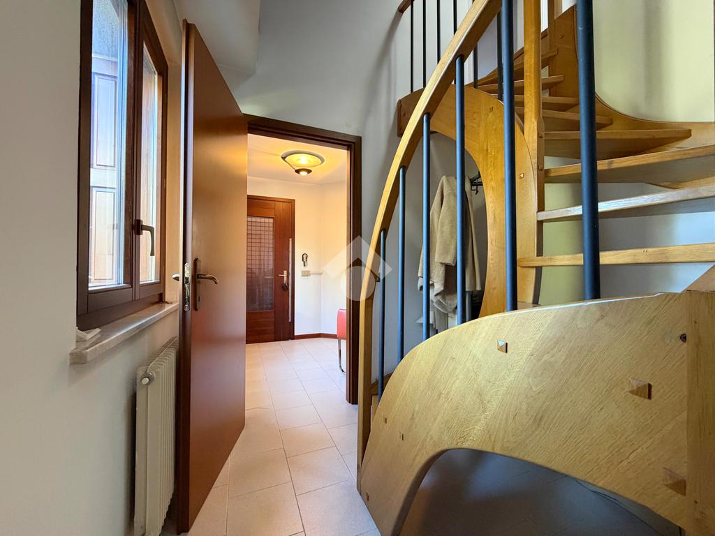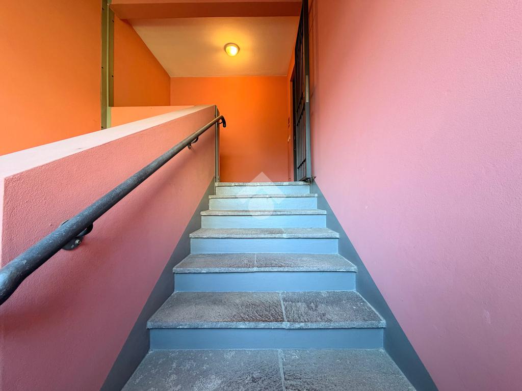 Dalla sala d'attesa si accede alla zona antibagno che ospita una scala che ci conduce al piano superiore e al bagno finestrato.